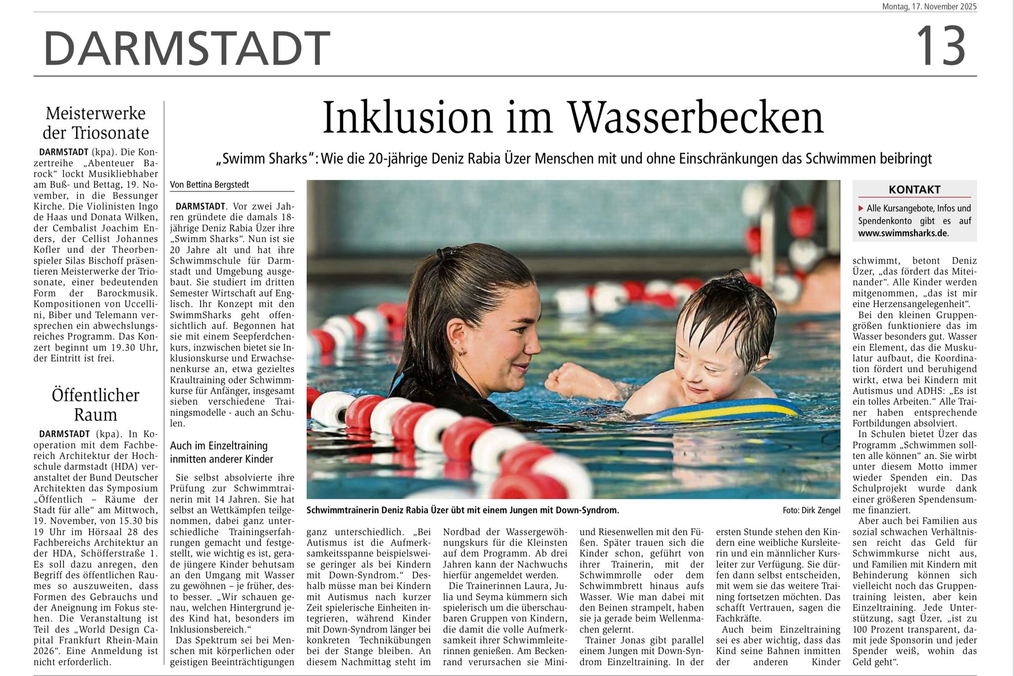 AUSGEZEICHNET Basierend auf 13 Bewertungen Gepostet auf SonjaTrustindex überprüft, ob die Originalquelle der Bewertung Google ist. Richtig tolle Schwimmschule! Meine Tochter hat dort in kürzester Zeit schwimmen gelernt und ihr Seepferdchen gemacht. Sie war so begeistert von jeder Schwimmstunde, dass sie jetzt im Fortgeschrittenen Kurs weitermachen möchte. Die Kurse sind in sehr kleinen Gruppen, so dass individuell auf die Kinder eingegangen werden kann und die Kinder wirklich mit Spaß dabei sind. Die Trainerinnen sind alle total nett und gehen toll mit den Kindern um. Ich kann die SwimmSharks nur empfehlen!Gepostet auf Melina ÇiçekTrustindex überprüft, ob die Originalquelle der Bewertung Google ist. Kleine Gruppen, die Kinder fühlen sich wohl und Ängste werden ernst genommen. So herzlich, nur zu empfehlen.Gepostet auf CRISTINA Ullastres QuevedoTrustindex überprüft, ob die Originalquelle der Bewertung Google ist. Meine 9-jährige Tochter besucht den Schwimmkurs und wir sind sehr zufrieden. Sie hat Ende Oktober letzten Jahres angefangen und hat bereits das bronzene Abzeichen erreicht und ist kurz davor, das silberne zu bekommen. Sie ist sehr glücklich in dem Kurs.Gepostet auf Büsra CicekTrustindex überprüft, ob die Originalquelle der Bewertung Google ist. Eine sehr freundliche und geduldige junge Dame, die auch mit Kindern sehr gut klar kommt. Klein gehaltene Gruppen, wo dadurch die Kinder sich sicher fühlen und schneller lernen.Gepostet auf Lejla AdemiTrustindex überprüft, ob die Originalquelle der Bewertung Google ist. Absolut empfehlenswert! Wir sind super zufrieden mit den Schwimmkursen bei SwimSharks. Die Trainerin ist unglaublich engagiert, geduldig und liebevoll im Umgang mit den Kindern. Man merkt sofort, dass sie weiß, was sie tut. Sie geht individuell auf jedes Kind ein und schafft eine entspannte, motivierende Atmosphäre. Unsere kleine hat in kurzer Zeit große Fortschritte gemacht und freut sich jedes Mal auf den Unterricht.Gepostet auf Ceren AyricTrustindex überprüft, ob die Originalquelle der Bewertung Google ist. Wunderbares Training und wunderbare Betreuung. Würde mich jedes Mal wieder für die Swimsharks entscheiden!!!! Individuelle Betreuung bzw. Unterstützung ist auch versichert und ich fühle mich sehr wohl die Kinder da zulassen? Danke für diese tolle Arbeit. Tip top 100% empfehlenswert !!!!!!!?Gepostet auf Maike BerndTrustindex überprüft, ob die Originalquelle der Bewertung Google ist. Eine sehr empfehlenswerte Schwimmschule! Die Trainer:innen sind super freundlich, geduldig und motivierend. In kürzester Zeit hat mein Kind riesige Fortschritte gemacht. Sehr strukturiert! Endlich ein schwimmkurs, wo ich keine Bedenken, um meinen kleinen fraz habe. Absolut empfehlenswert für alle Altersklassen!Gepostet auf Rabia ÜzerTrustindex überprüft, ob die Originalquelle der Bewertung Google ist. Sehr organisiert, schnelle Rückmeldungen und die Kurse sind in kleinen Gruppen das ist super gutGepostet auf Tyulin SalimTrustindex überprüft, ob die Originalquelle der Bewertung Google ist. Ich bin absolut begeistert von der Schwimmschule.Mein Kind hat hier innerhalb weniger Wochen große Fortschritte gemacht. Die Schwimmlehrerin ist freundlich, geduldig und gehen individuell auf die Kinder ein. Kann ich nur weiterempfehlen.Gepostet auf Emma SauerweinTrustindex überprüft, ob die Originalquelle der Bewertung Google ist. Die Kurse in kleinen Gruppen aber vor allem die super lieben und engagierten Trainier*innen von SwimmSharks schaffen eine total tolle und familiäre Atmosphäre in der sich meine Kinder unglaublich wohl fühlen. Schon seit dem Seepferdchen begleitet das Team meine Kinder und legt viel Wert darauf sie individuell zu fördern und zu unterstützen. Jedesmal freuen sie sich schon auf den nächsten Termin!! Wir können SchwimmSharks nur empfehlen!!